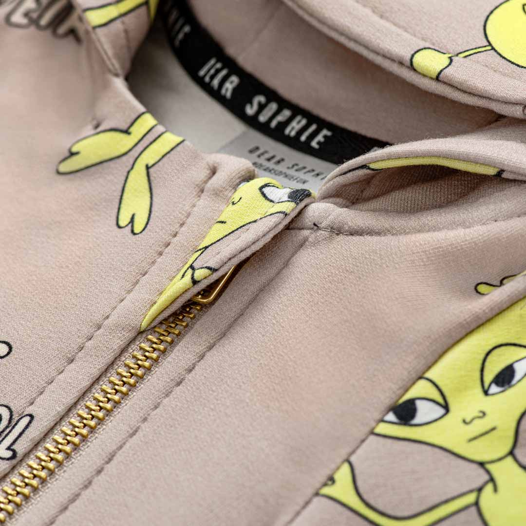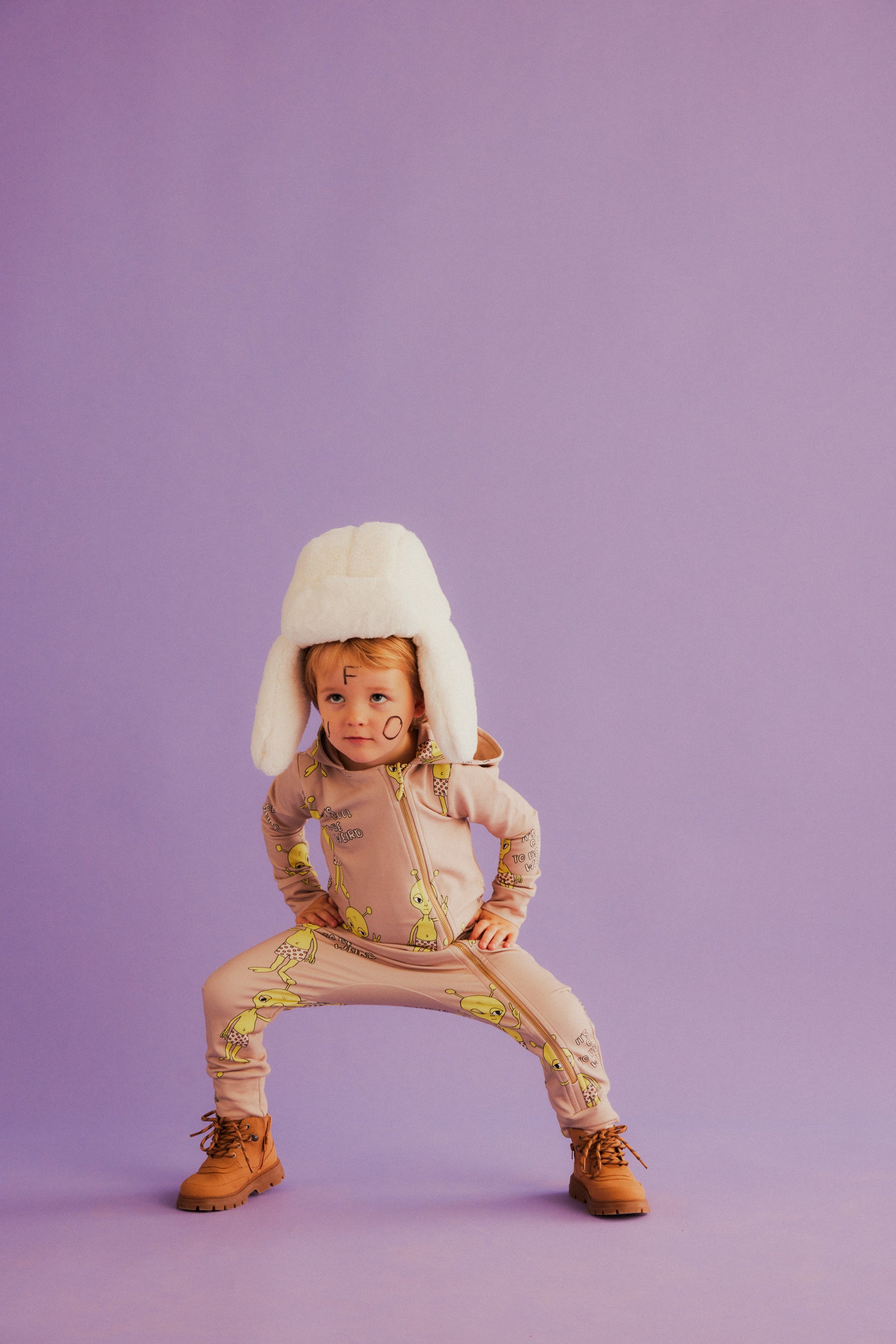 The hooded overall is a style that has been with us from the very beginning. Why? When newborns become our customers, they usually start their DEAR SOPHIE journey with bodysuits and overalls. Right from the start, this garment can serve as outerwear, which works perfectly for long walks. For a bit older little ones, our hooded overall successfully replaces a set of a hoodie and pants. It's very comfortable, easy to put on (with a nickel-free zipper that has extra protection under the neck), and it has a significant advantage – there's no risk of uncovered back thanks to it.