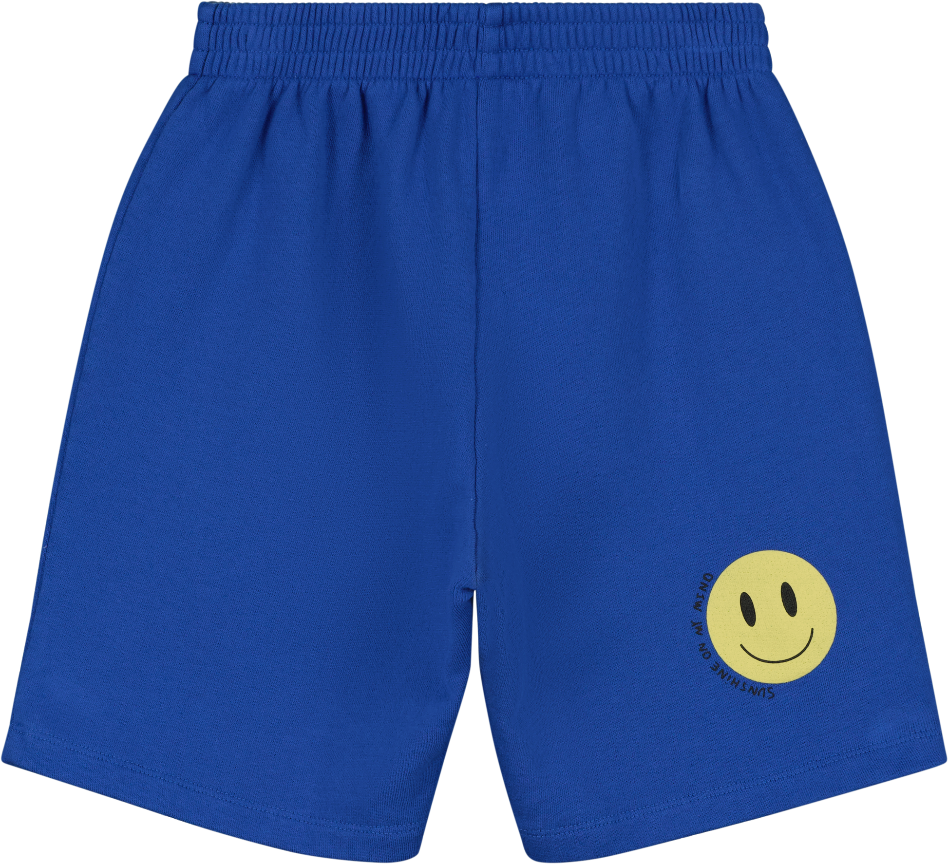 Wear a smile while wearing these shorts! These vibrant blue shorts, made from organic recycled fibres, feature a smiley face on the back leg, a wave down the front leg and our signature embroidered superhero mask below the waistband. With an elastic waist, back pocket and easy fit, they make for a comfortable option for freewheeling explorers.