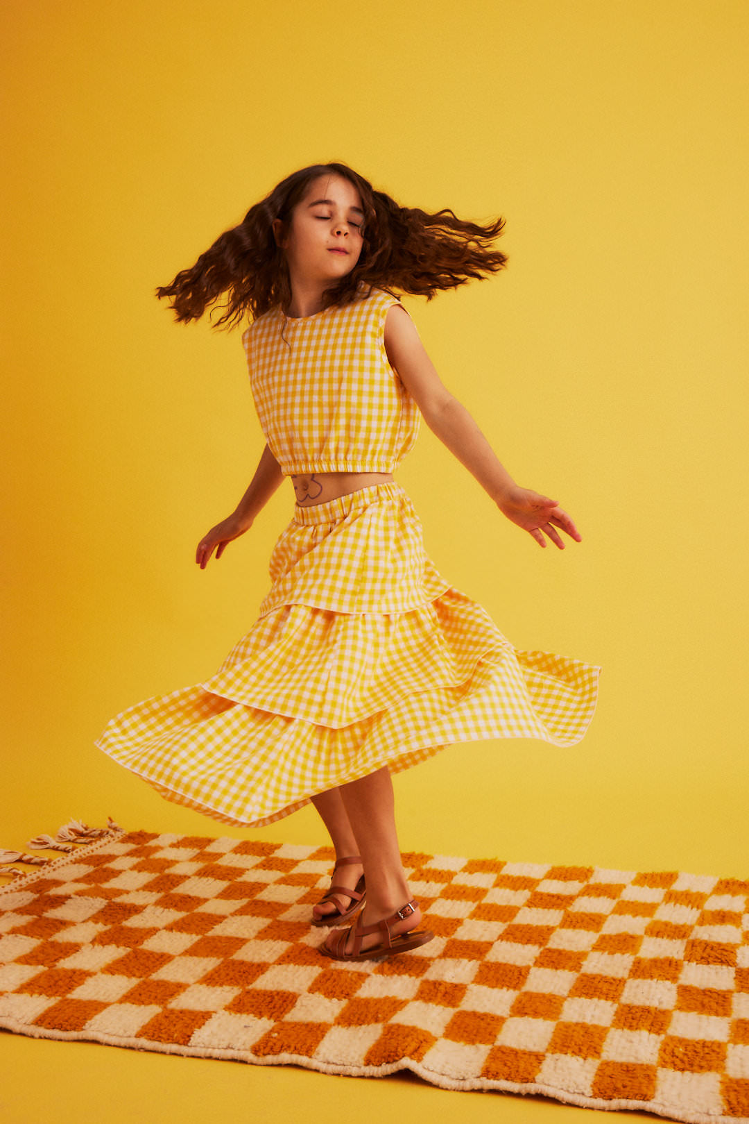 Our new crop top is something that we know you’ve been waiting for! It’s totally different than our previous one, but still as cute! Made of Soft OEKO Tex certified cotton this crop top will be perfect for summer days. It’s sleeveless and finished with an elastic band at the waist, which makes is comfy and prevent it from riding up.