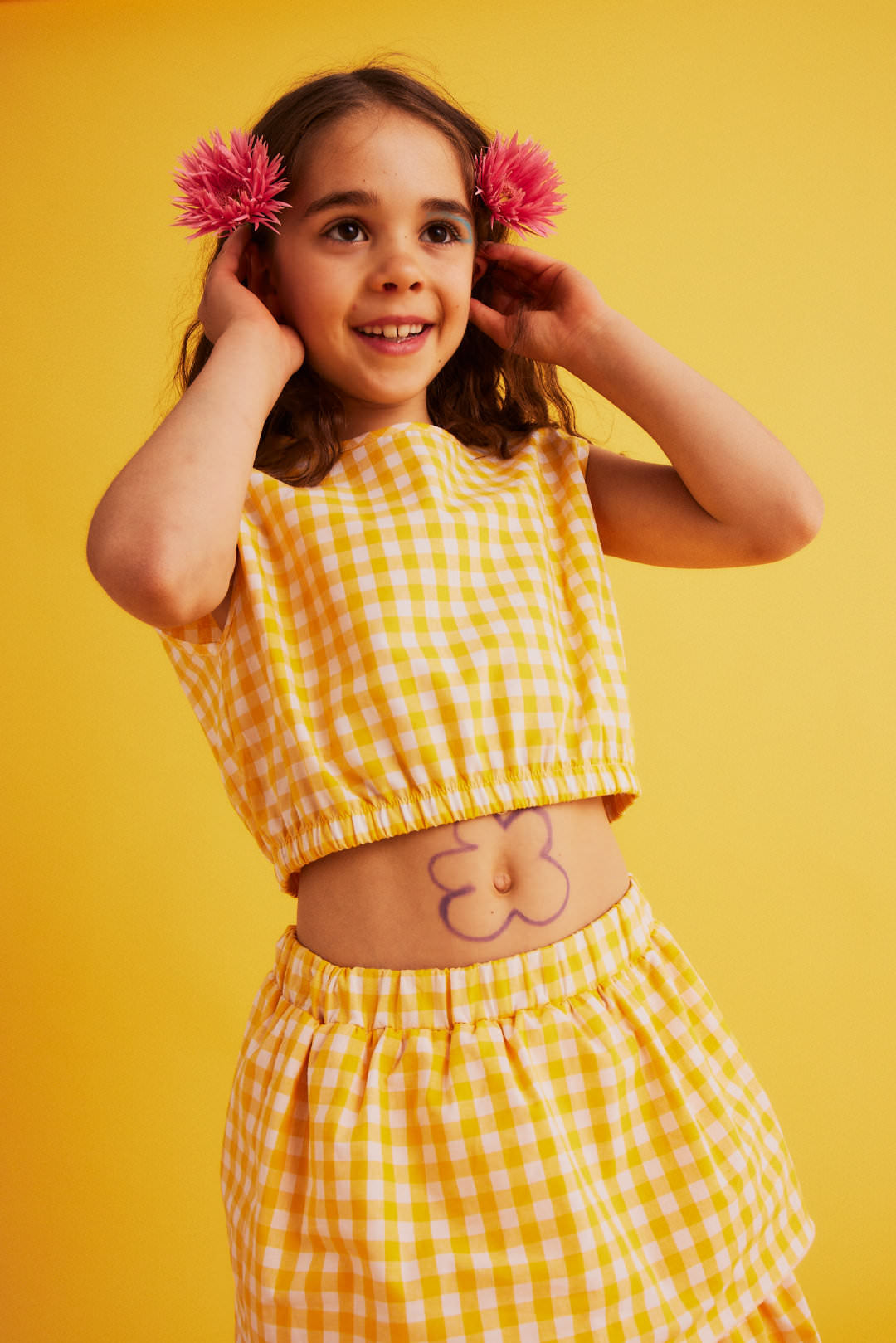 Our new crop top goes well with everything! Leggings, pants, skirts and of course cullotes - however you and your Little One like it!