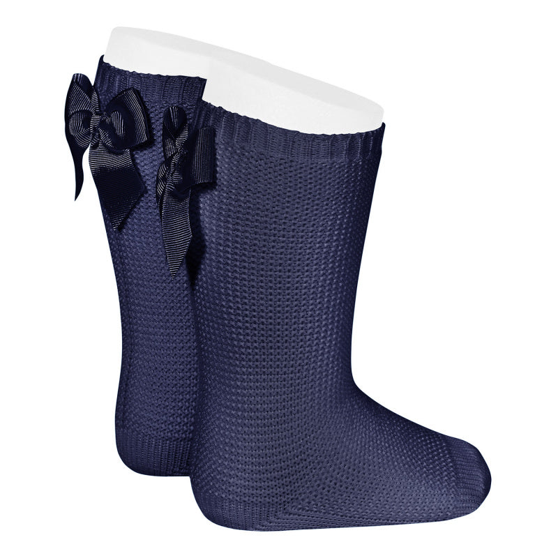 Garter stitch knee high socks, 100% cotton, with bow, for baby from 0-3 months to 6 years.
