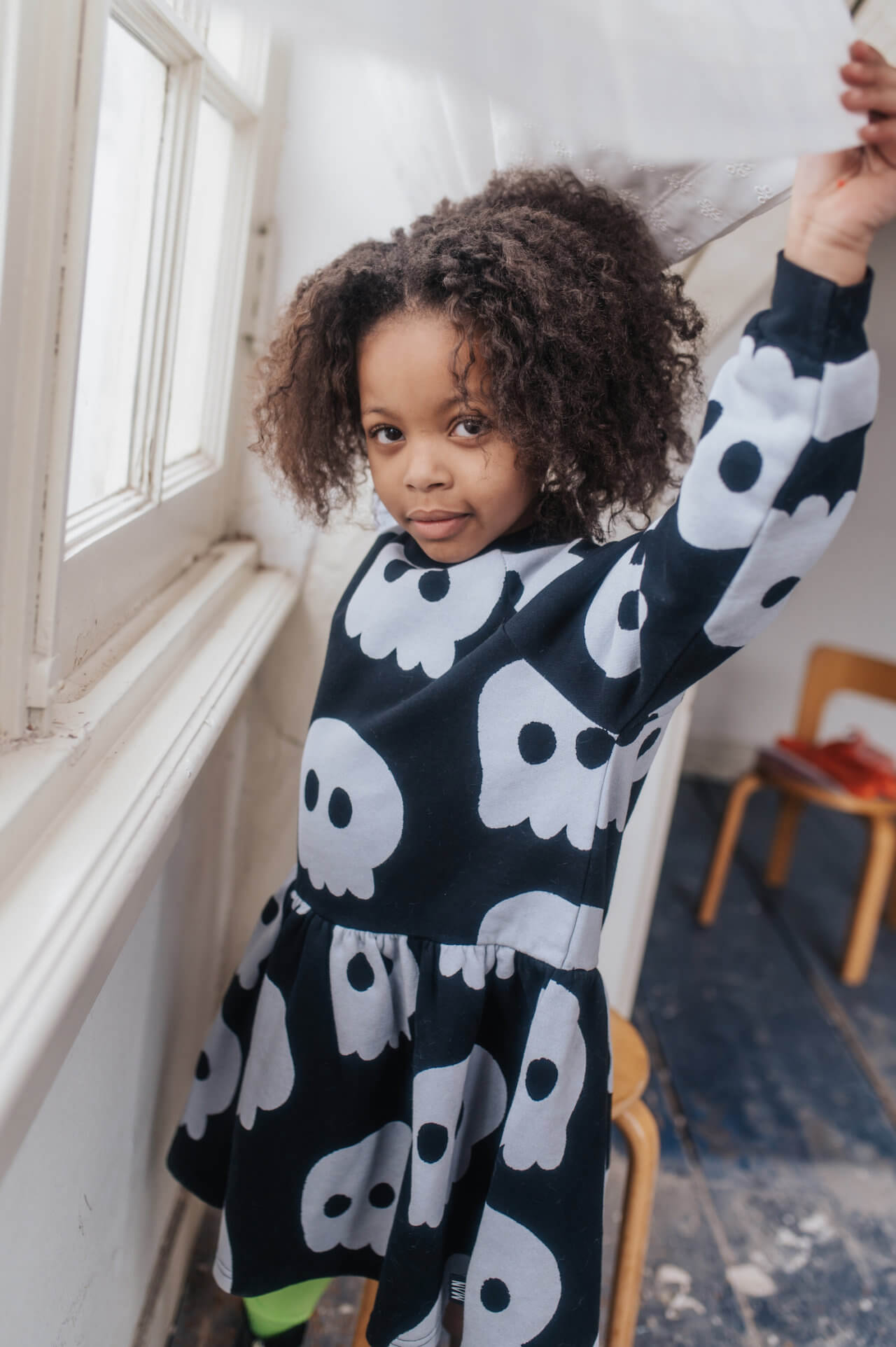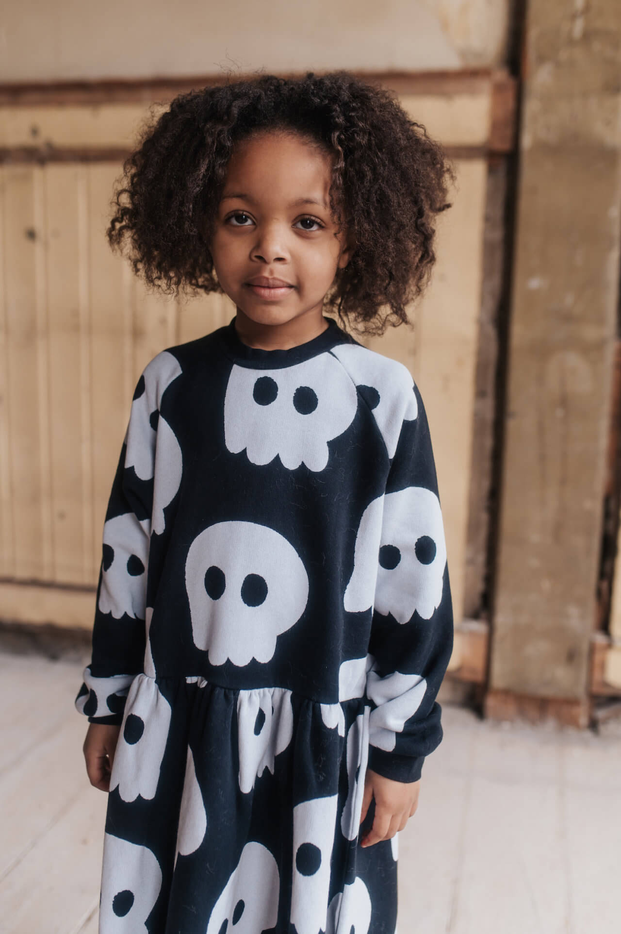 The trendy black sweater dress for kids. The most spectacular cozy sweater dress you’ve ever seen! This dress is designed to give your little one a fun, comfortable, and cool style with an edgy, scary twist, all while keeping it ghostified!
