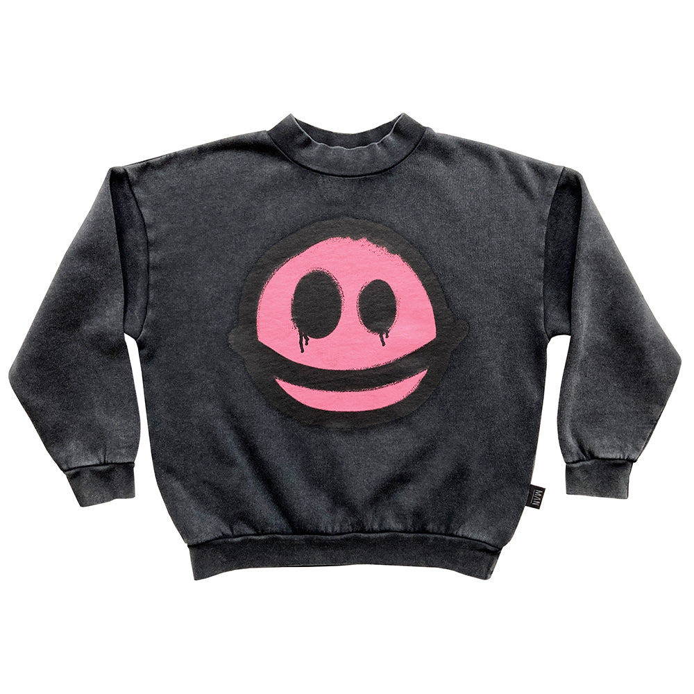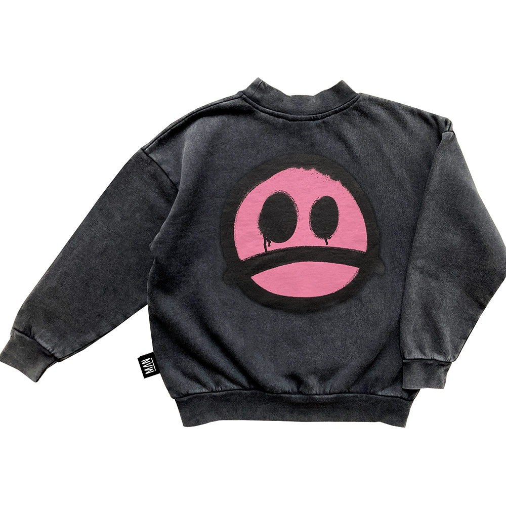 'HAPPY SAD' placement print at front and back.