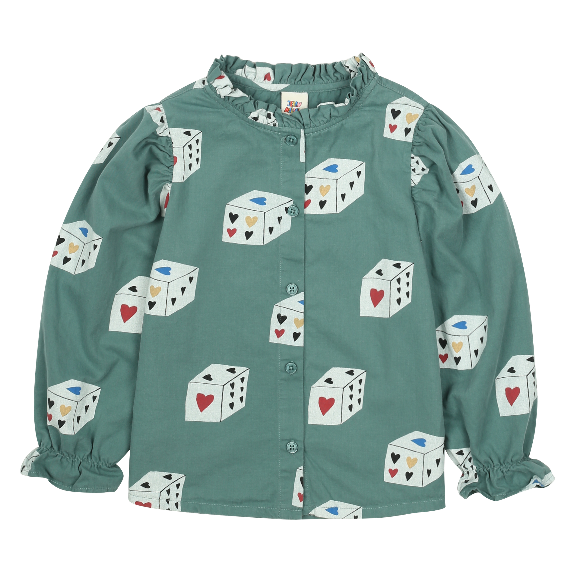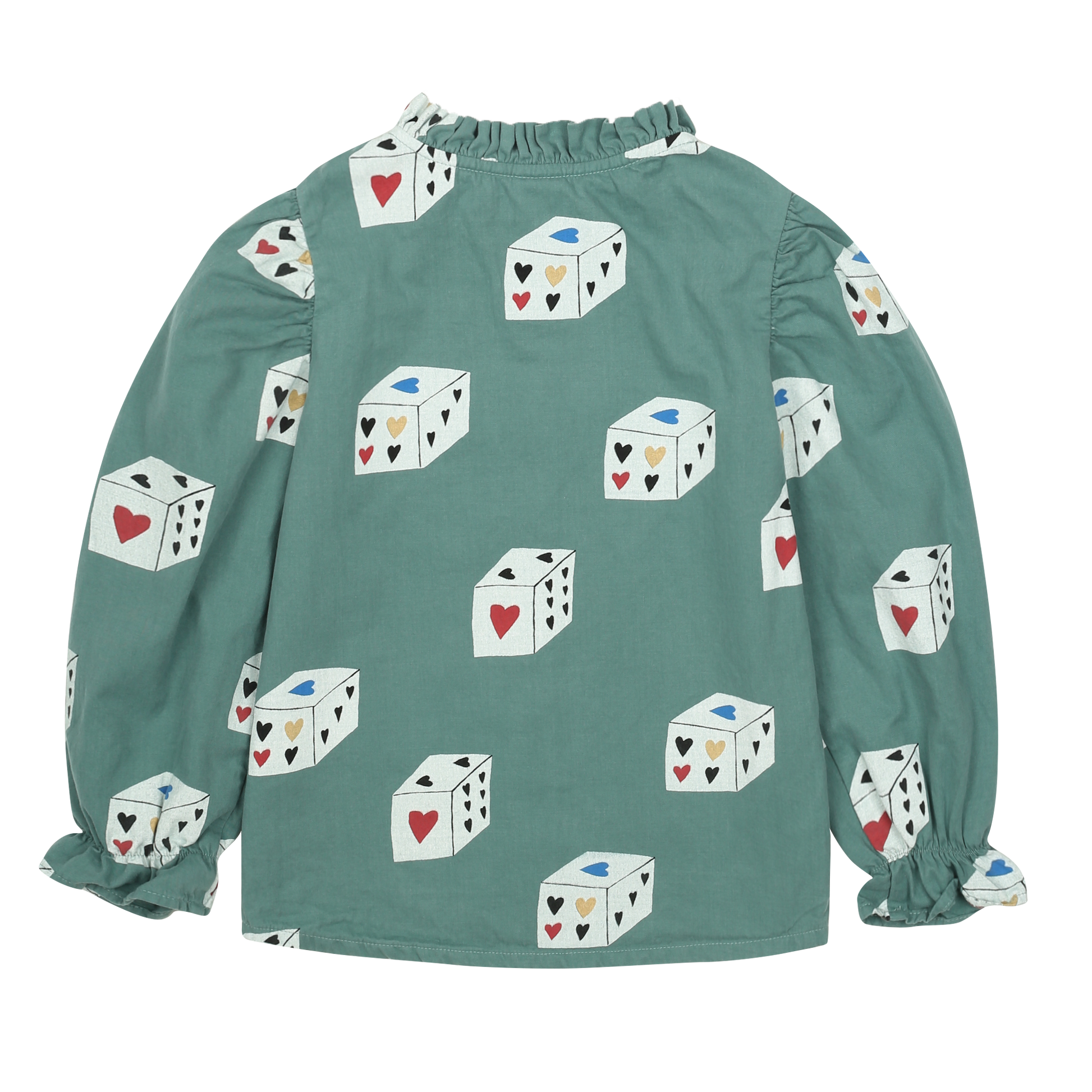 HEART DICE SHIRRING BLOUSE - DIP GREEN - JM2520129