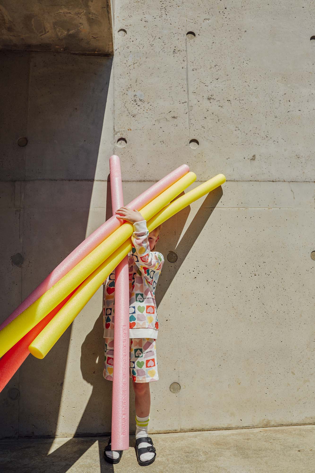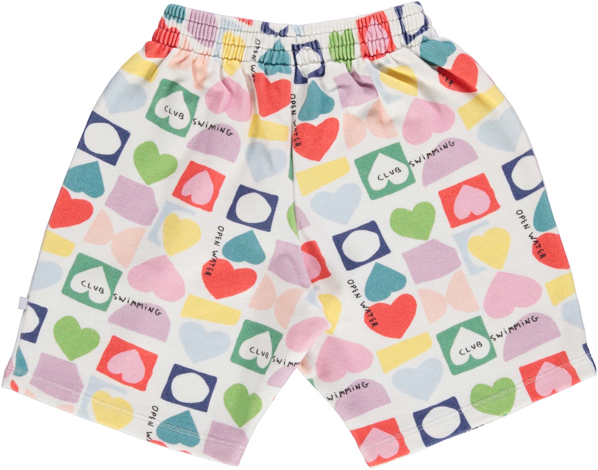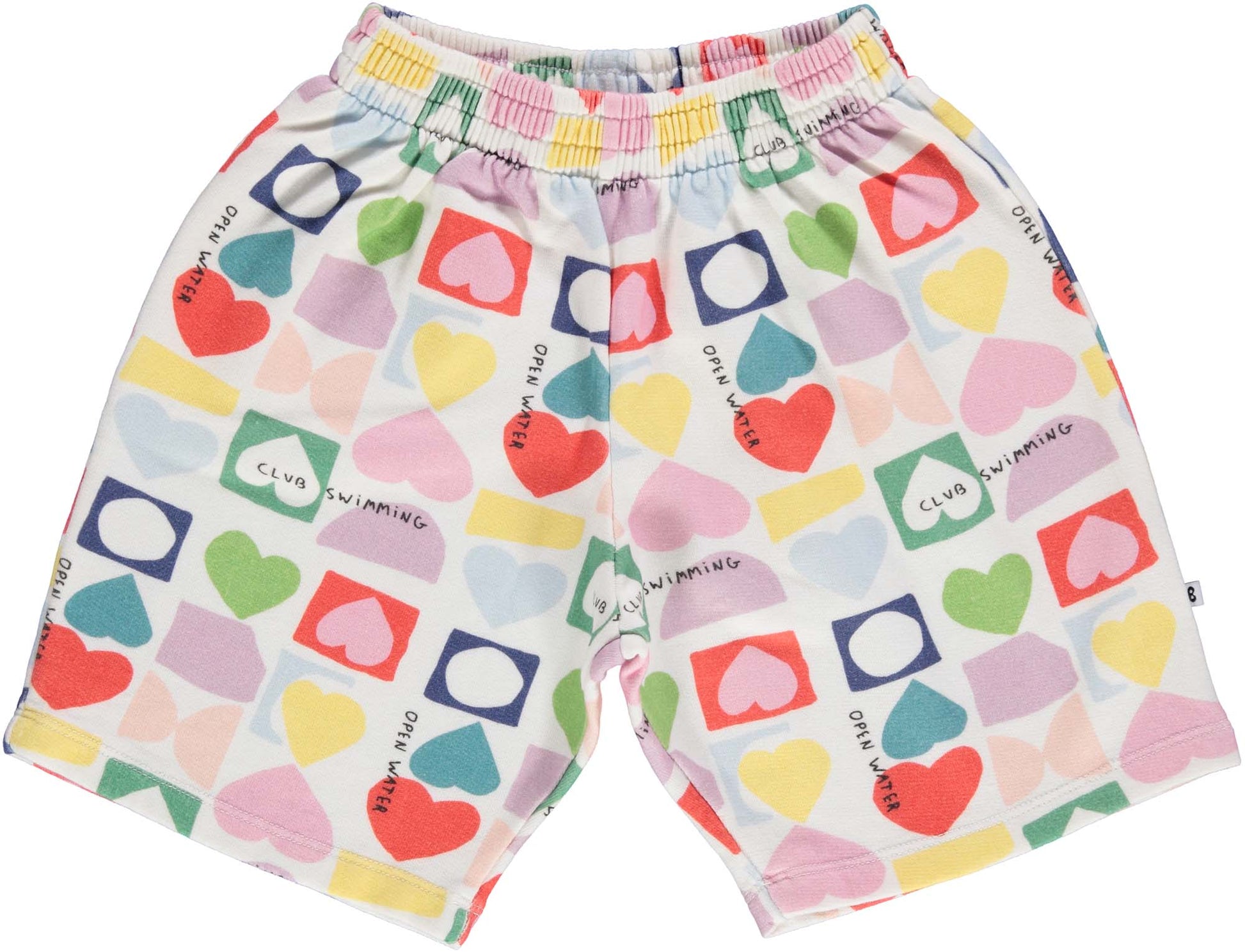 With cut-out hearts on a natural coloured background, these shorts are made from organic recycled fibres. An elastic waist, back pocket and easy fit, make for a comfortable option for freewheeling explorers.