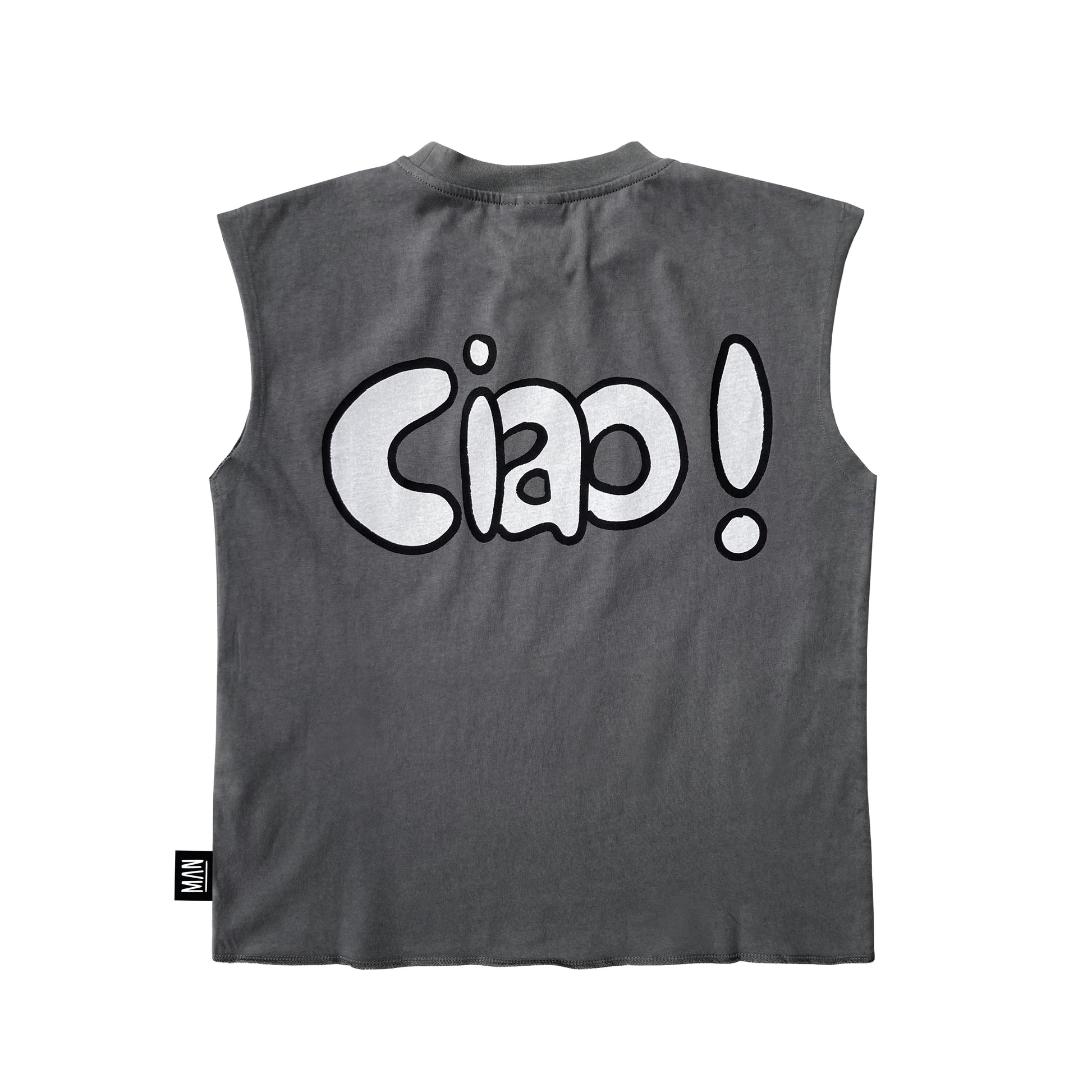 'HEY CIAO' placement print at front and back.