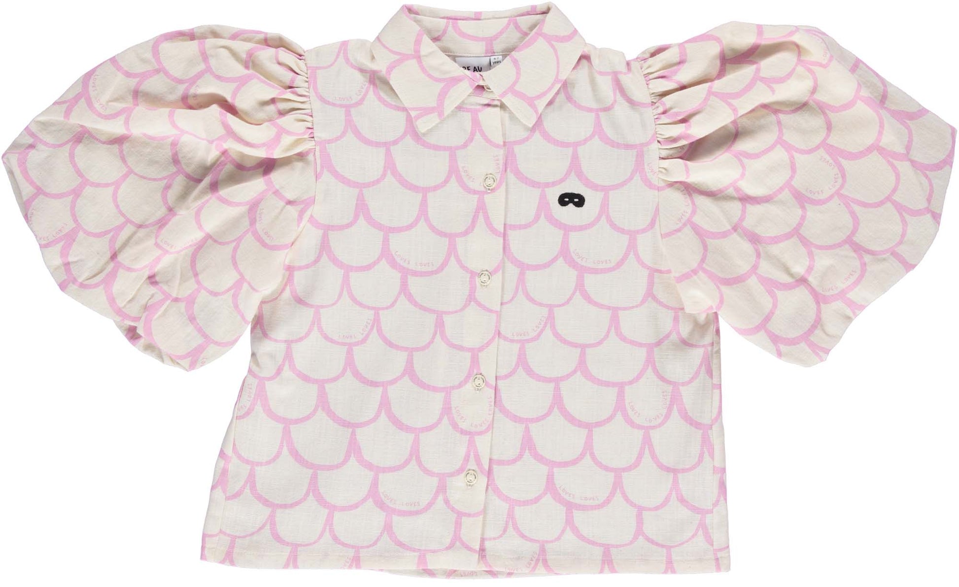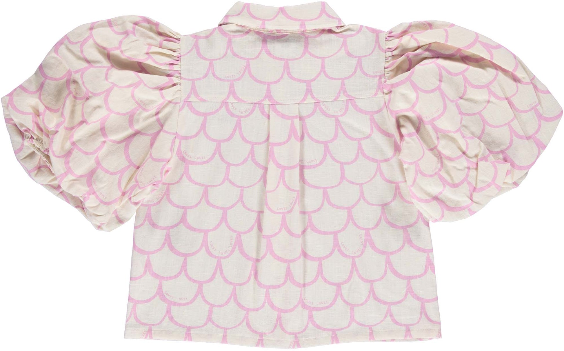 Featuring our beautiful scales print on textured cotton, this blouse is designed with puff sleeves, collar and cute little buttons down the front. Search for the uplifting hidden message on the buttons...