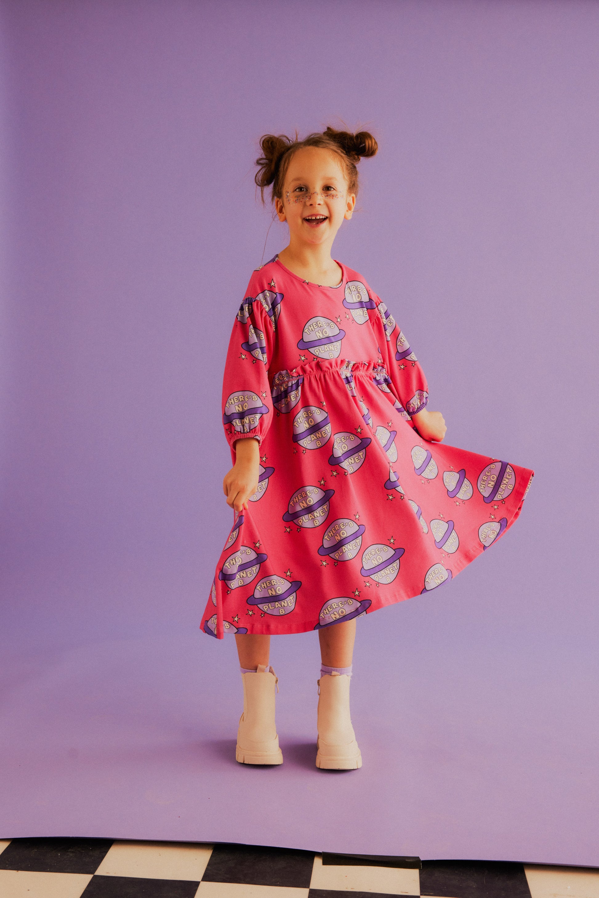 Beautiful girly dress that we promise you your Little Princess will never want to take off! It’s really light and it spins like crazy! It has mid-sleeves that make it perfect for all year around – in winter just add bomber jacket or cardigan and you’re ready to go! The dress is made from fabric that is lighter than hoodie – hence it’s very comfy, not heavy at all.