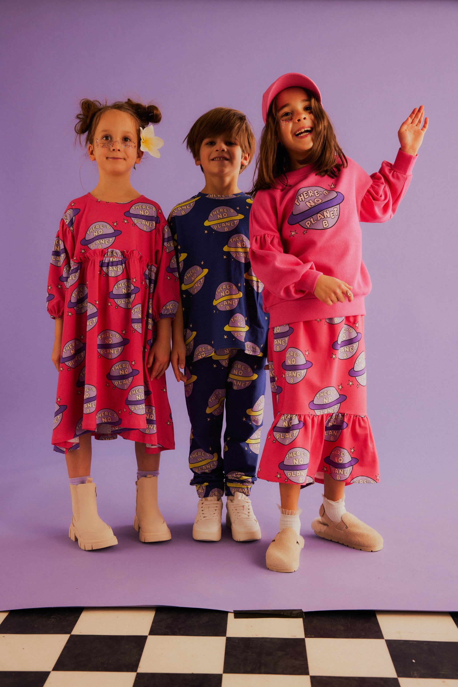 Not sure how to style it? Try it with literally everything. As the shape is really simple, the skirt looks great with both longer back in hoodie, a blouse with puffy sleeves, as well as with a t-shirt and a bomber jacket. Create all-over-printed outfits by pairing the skirt with same capsule’s top or go for something more basic by combining printed bottom with plain top.