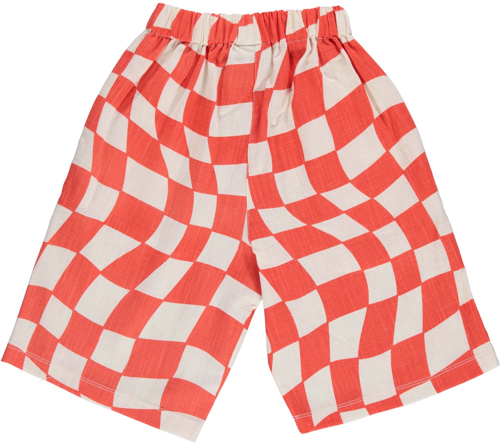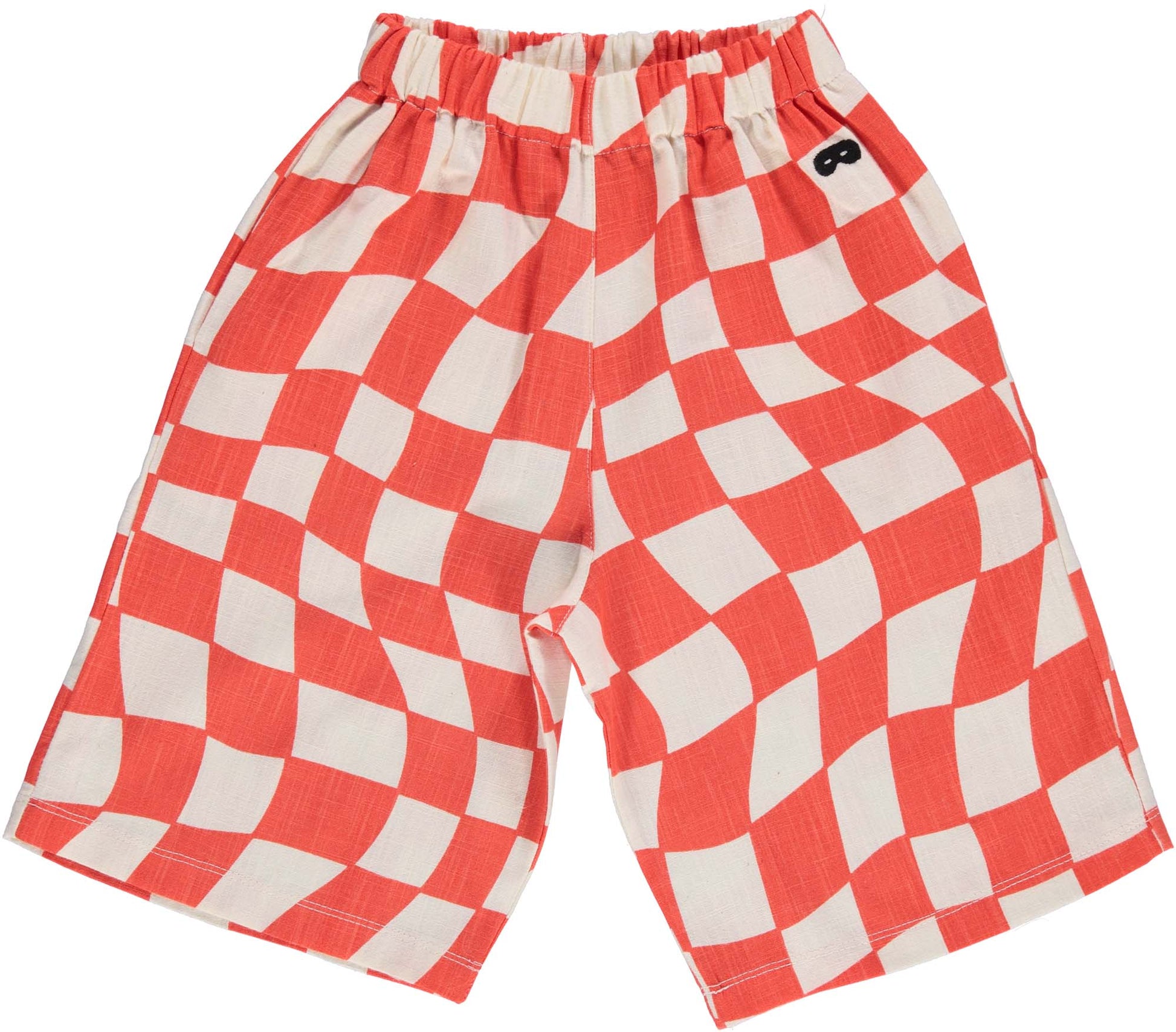 These woven cotton shorts feature a rippled check print which has been designed to imitate the distorted pattern seen at the bottom of a swimming pool. They have an elastic waist, back pocket and easy fit, making them a comfortable option for freewheeling explorers. They also have our signature embroidered superhero mask below the waistband.