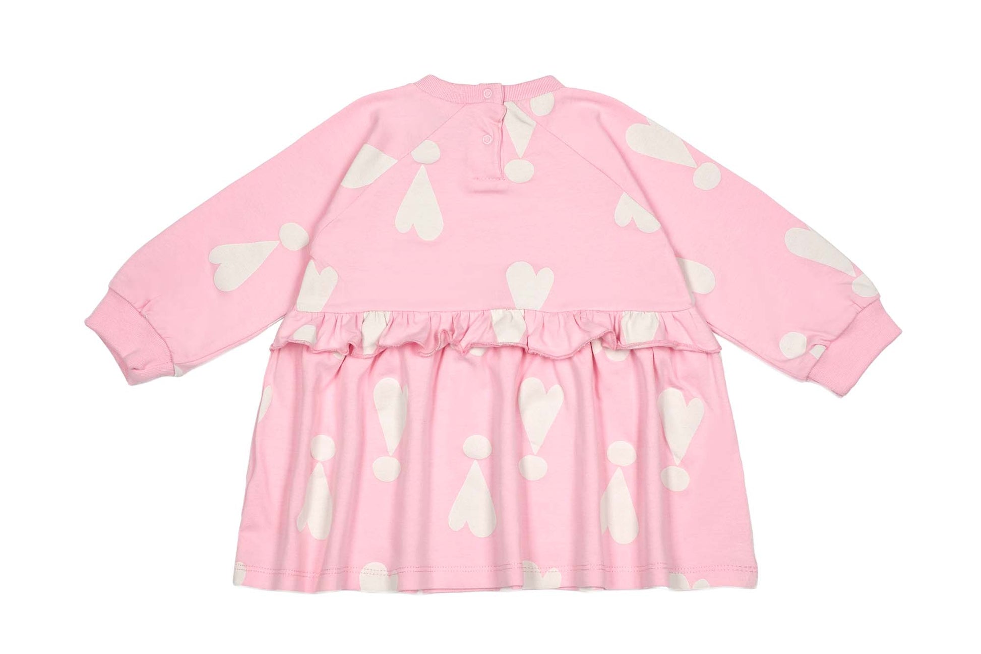 This easy to wear, soft, organic cotton dress features our Exclamation Hearts print. Press buttons at the back make changing and dressing effortless. With long raglan sleeves, ribbed cuffs and a scoop neck, this is the perfect dress for little explorers.