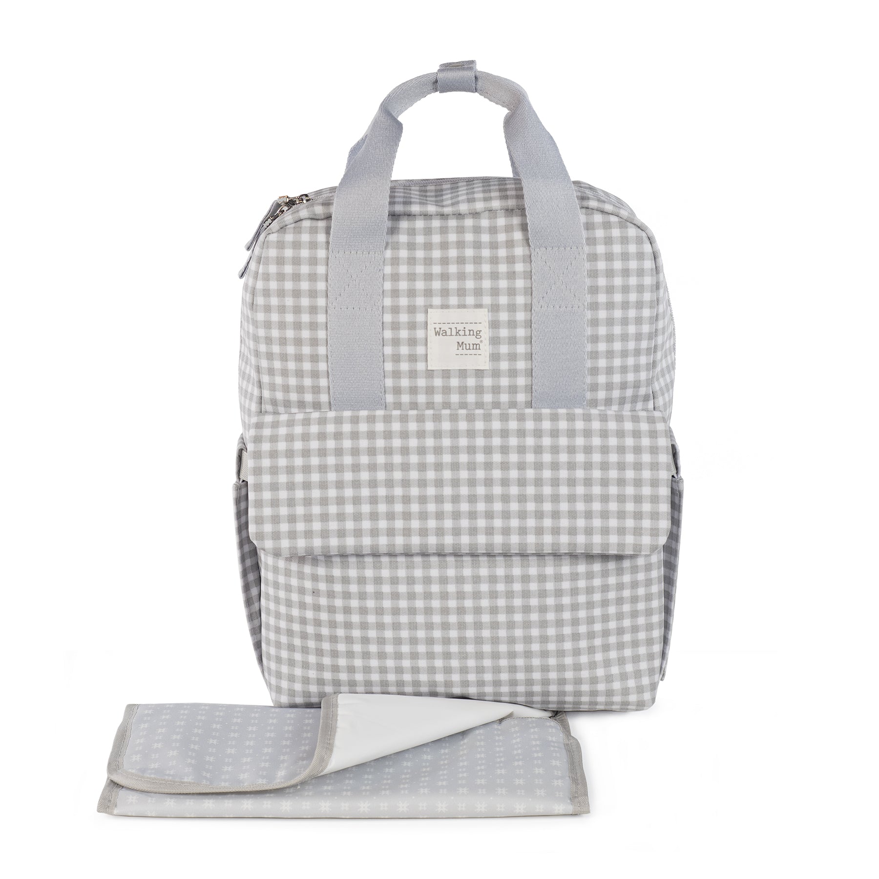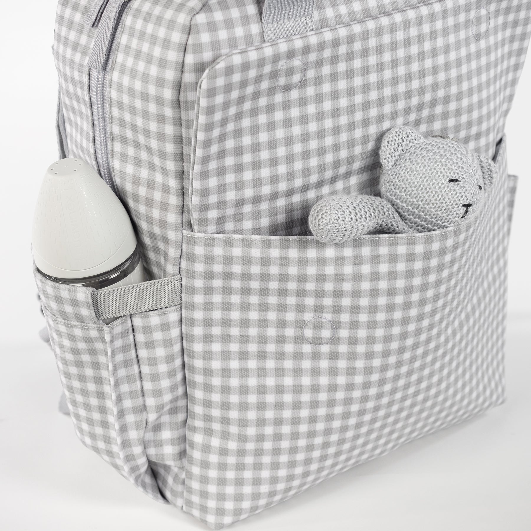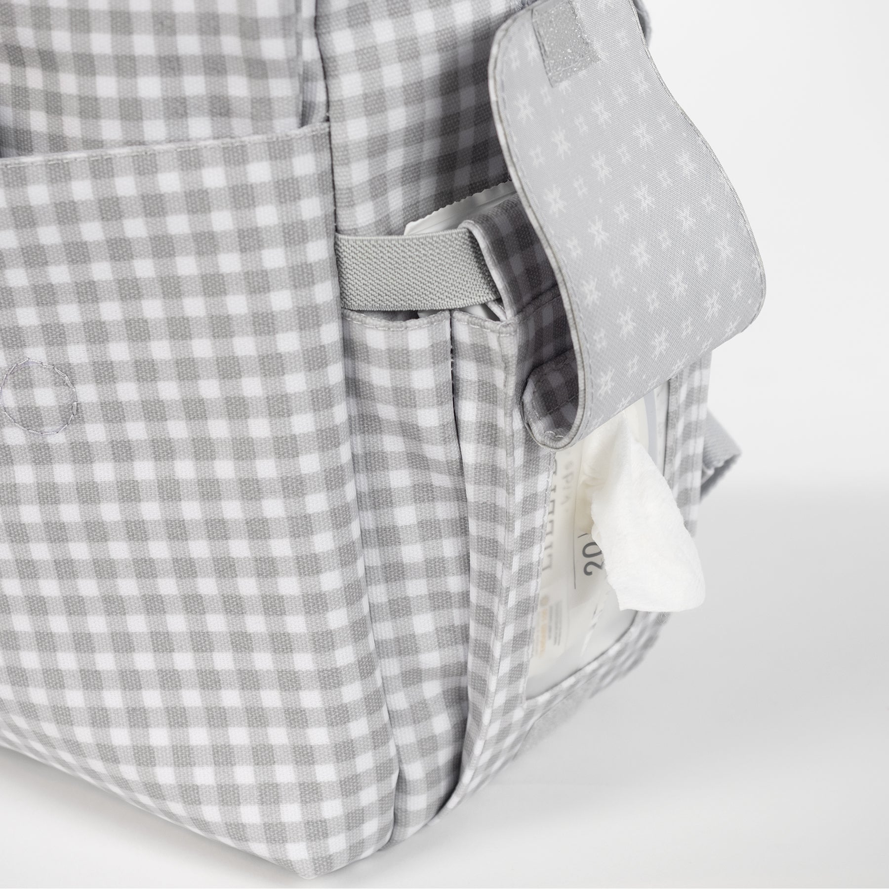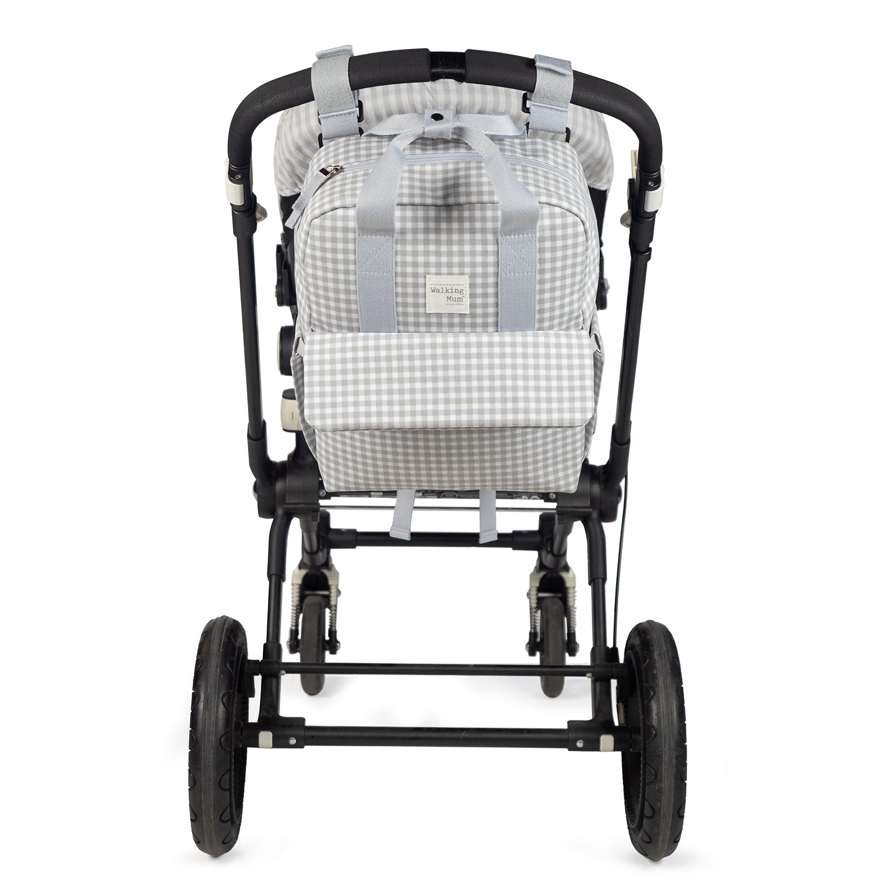 Backpack for stroller I love vichy Grey, modern, sportive and urban. Lightweight, strong and with a great capacity diaper bag to carry everything you need for your baby. It has a lot of pockets in order to have on hand everything you need for your baby. The bag has a universal fastening system to easy fixing in any model of stroller. Made of a durable and easy to clean material. Measurements: 28X37X12 cm. Walking Mum protects your baby using the best fabrics. All materials are free from azo dyes and noxious substances harmful to your baby’s health. Walking Mum changing bags.