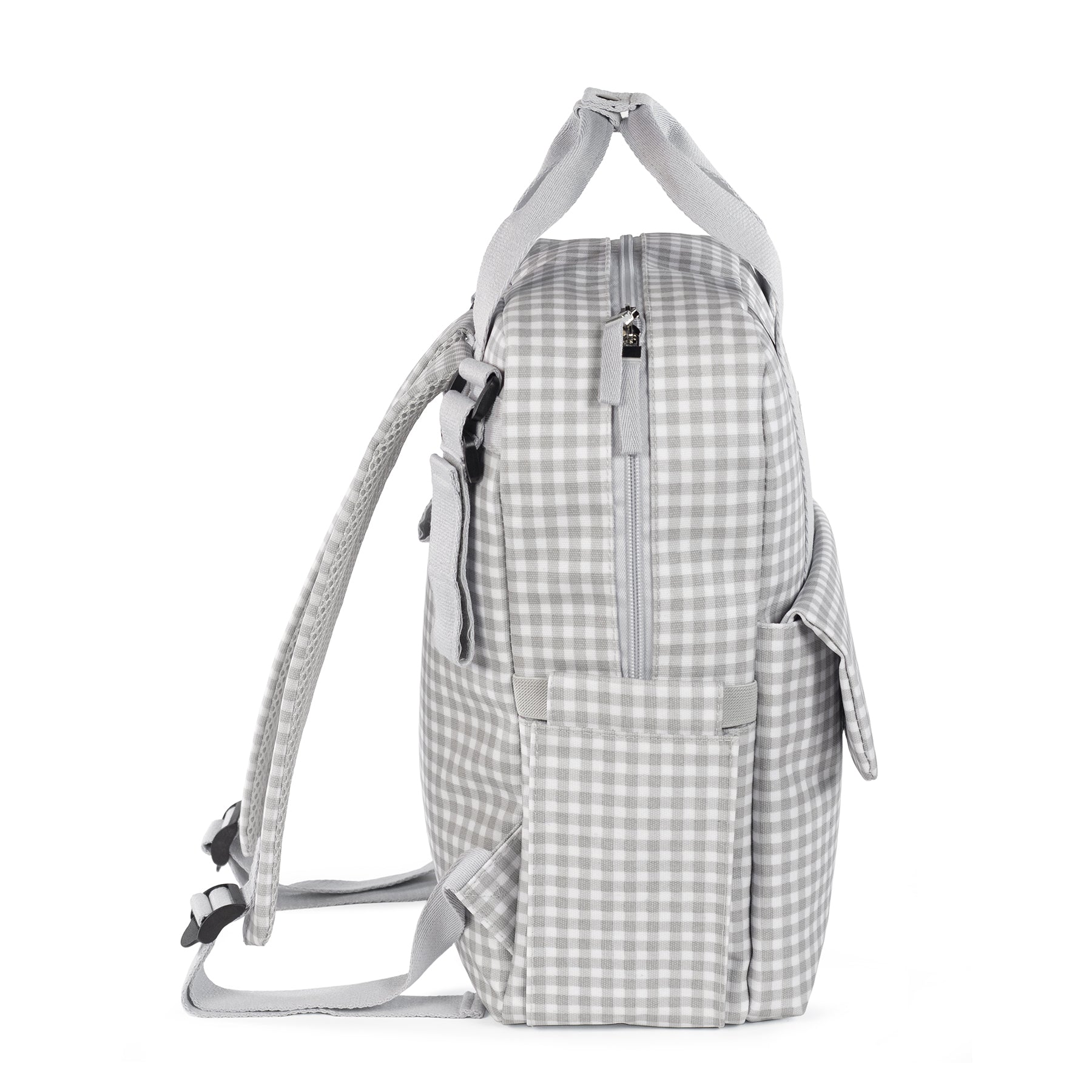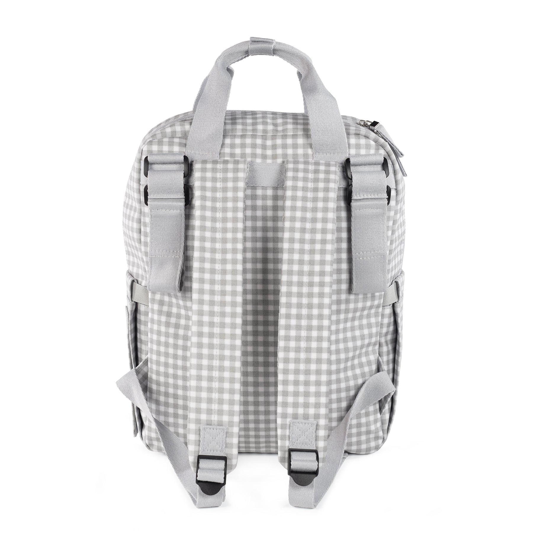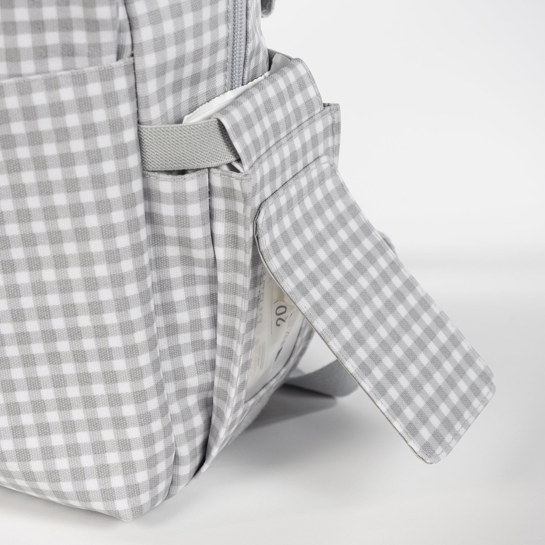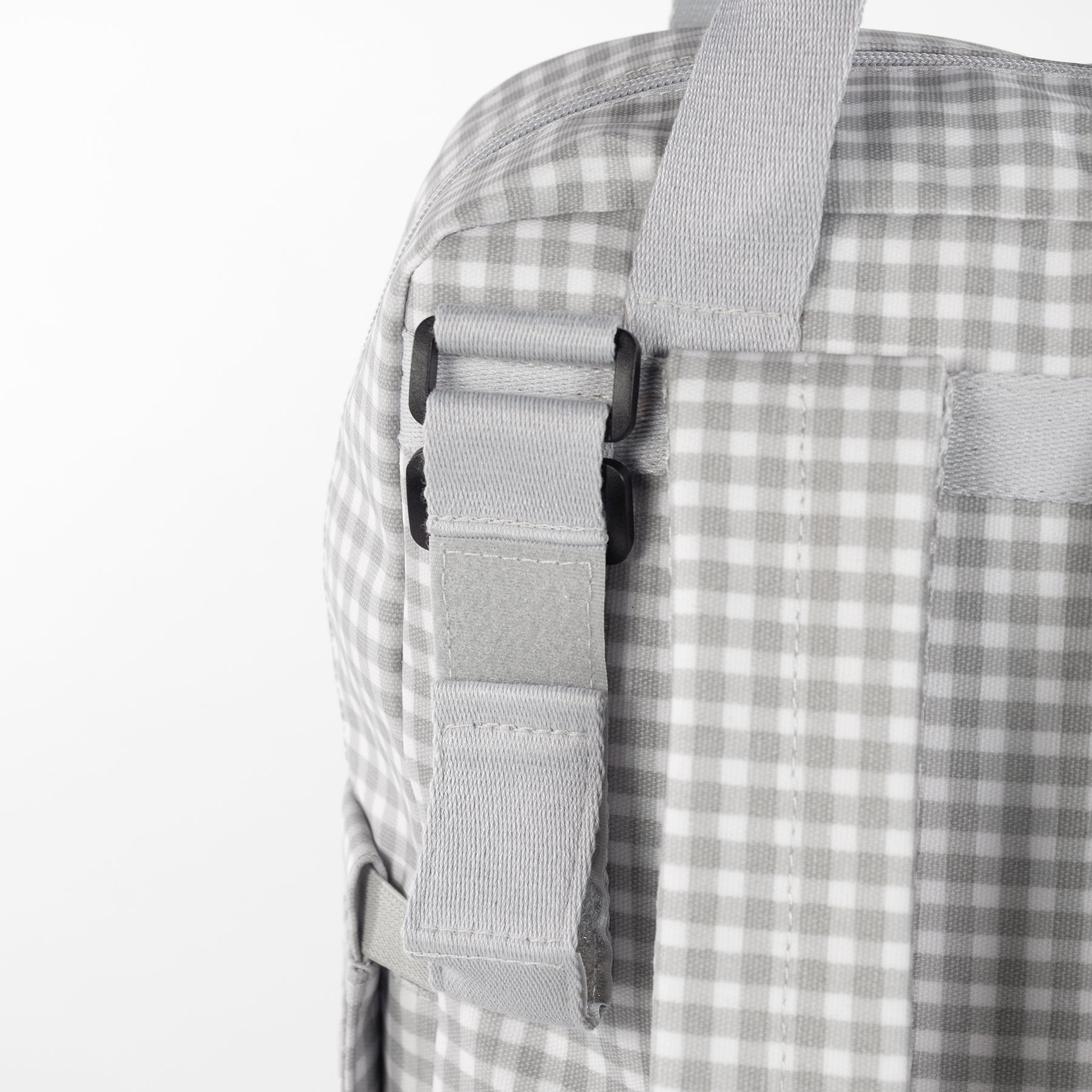 Backpack for stroller I love vichy Grey, modern, sportive and urban. Lightweight, strong and with a great capacity diaper bag to carry everything you need for your baby. It has a lot of pockets in order to have on hand everything you need for your baby. The bag has a universal fastening system to easy fixing in any model of stroller. Made of a durable and easy to clean material. Measurements: 28X37X12 cm. Walking Mum protects your baby using the best fabrics. All materials are free from azo dyes and noxious substances harmful to your baby’s health. Walking Mum changing bags.
