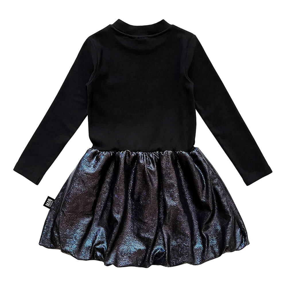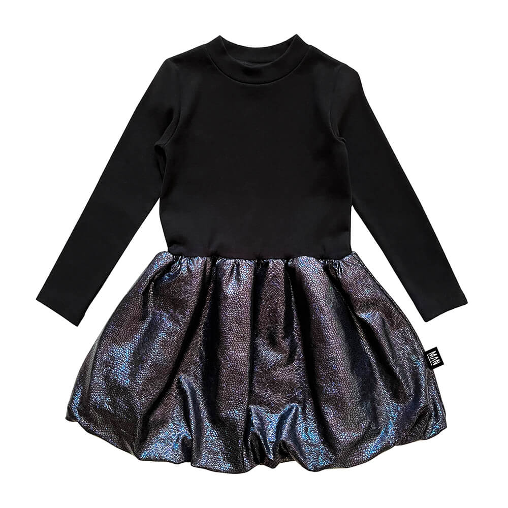 The magical black balloon dress for kids. Introducing our dazzling and trendy kidswear balloon dress in a shiny snake 95% polyester and 5% elastane material. Your little one will be the star of any occasion with this uniquely stylish and special piece.