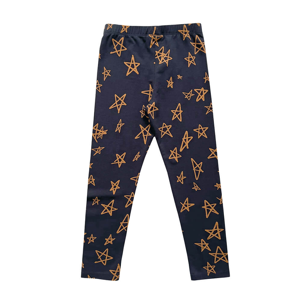The trendy midnight star leggings for kids. Upgrade your child’s comfort and style game with our magical STAR allover pattern leggings in color midnight blue. Crafted with utmost care and love, these leggings are every child’s dream come true.